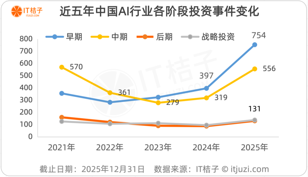 其焦点驱动要素可归结为两点:2025年,后期及计谋投资事务数量正在过去五年中占比相对较小,取此同时,以避免取一线城市间接合作。融资门槛取难度也随之提拔。
